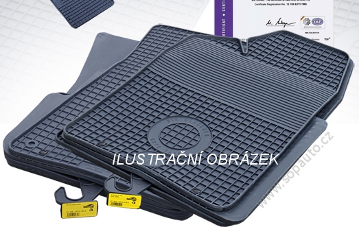 Autokoberce jsou vyrobeny z velmi kvalitní pryže přesně vždy pro daný typ vozu. Dokonale přiléhají ke tvarům podlahy a výborně chrání podlahu vozidla proti znečištění. Doporučujeme na zimní měsice i jako náhradní variantu za letní textílní koberce. Sada gumových autokoberců obsahuje čtyři kusy autokoberce. Mírně zvýšený okraj autokoberců zabraňuje znečištění interiéru. Gumové koberce budou vaším dobrým pomocníkem v udržení čistoty podlahy a interiéru vašeho vozu. Snadno se udržují vodou a běžnými čistícími prostředky.