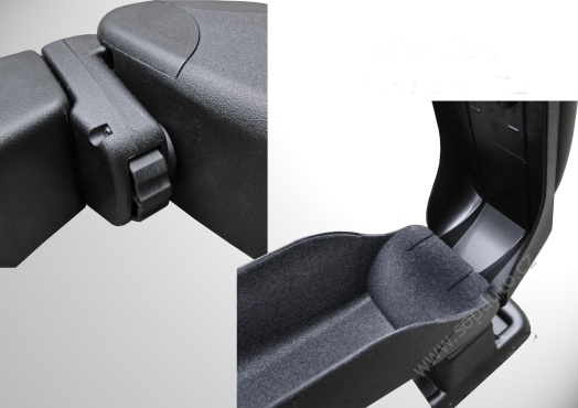 Výklopná nastavitelná loketní opěrka S2(mezi přední sedadla) s posuvným víkem a úložným prostorem je vyrobena z m...